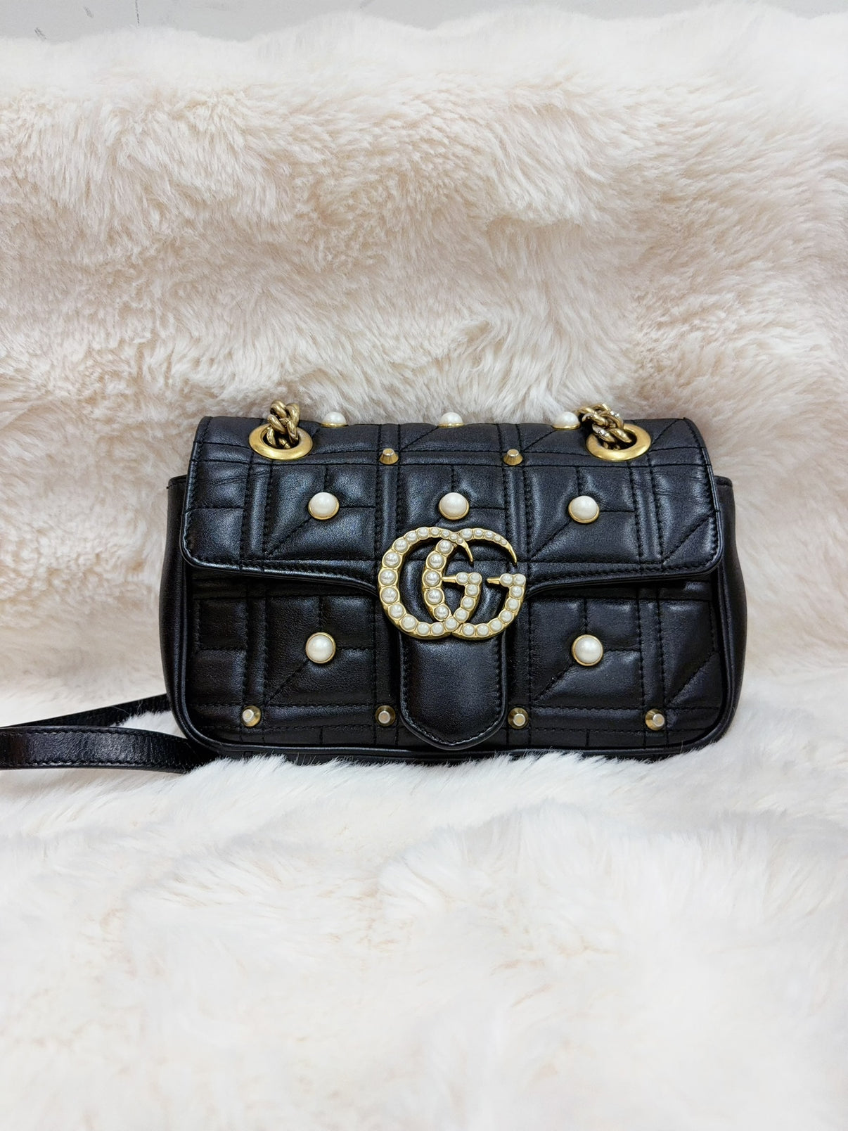 - Pearl-embellished GG logo