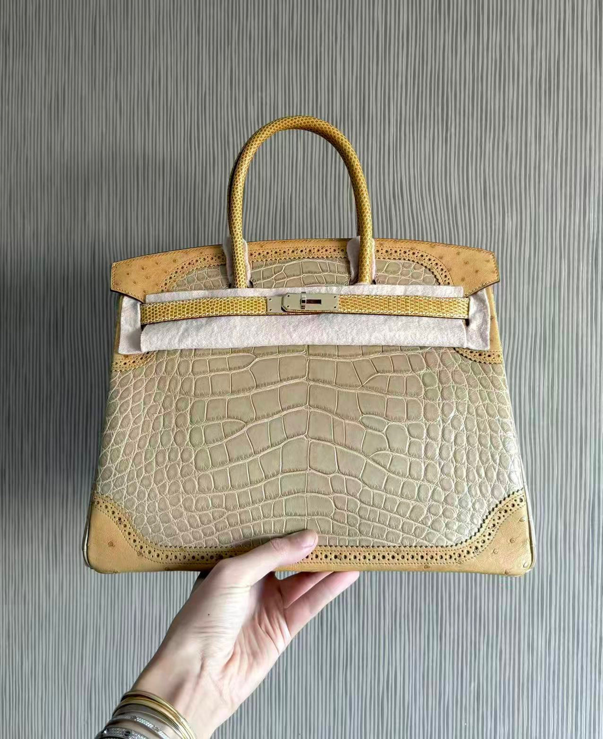 Hermès Birkin 35 in a stunning two-tone neutral palette. Classic structured silhouette with double rolled handles and front sangles.