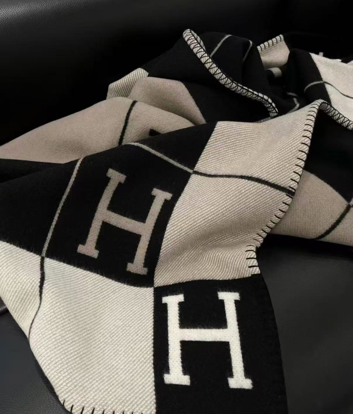 Hermès blanket featuring the iconic “H” design. Soft and warm, suitable for home or travel use.